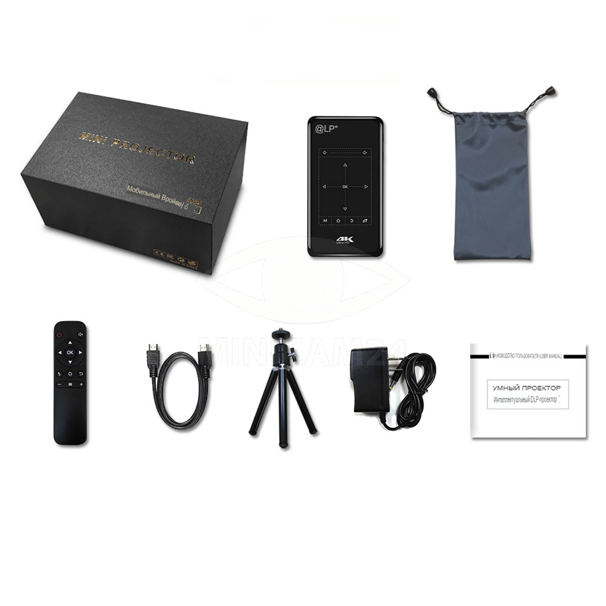 Портативный мини проектор DLP P09 с пультом ДУ способен воспроизводить видеофайлы высокого качества. Это возможно благодаря технологии DLP примененной в этой модели, а также оптическому разрешению 854x480 dpi. Емкость аккумуляторной батареи мини проектора 4200 мАч, что позволяет его использовать около 2 часов. Операционная система на базе Android 6.0 позволит Вам перемещаться по просторам интернета без каких-либо ограничений, за быстродействие отвечает оперативная память в 1 Гб, а внутренняя память в 8 Гб, позволит сохранять музыку, фильмы и игры непосредственно в сам проектор.